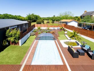 - Une maison principale avec piscine couverte et chauffée.