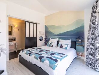 La maison principale de 150m² avec pièce de vie de 60 m² donnant sur vaste terrasse et son jardin paysager (piscine 6x3), Cuisine A/E, buanderie, salle de sport. A l'étage 3 grandes chambres dont une suite parentale (dressing et sde), salle de bains avec baignoire balnéo.